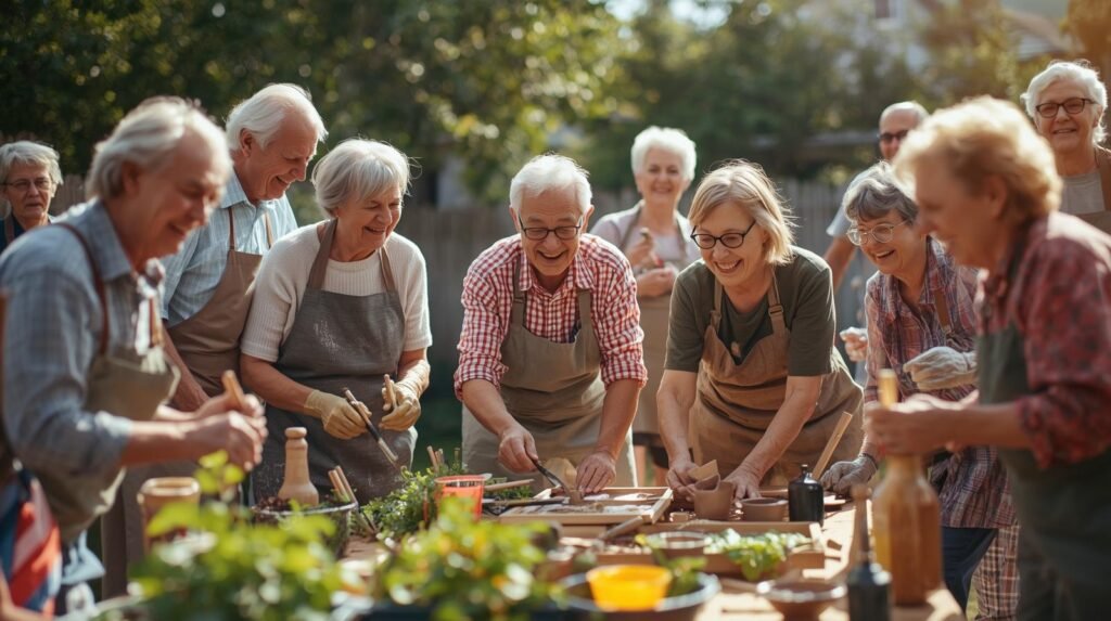 Rassemblement de seniors dans la joie et la bonne humeur.